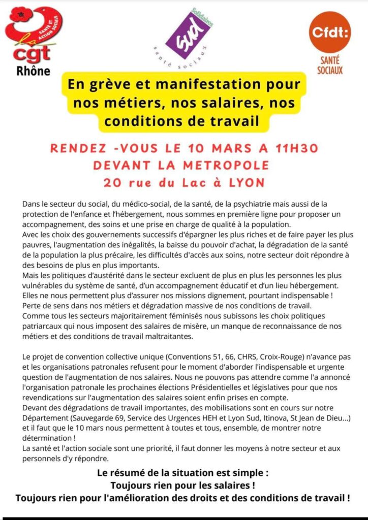 MANIFESTATION le 10 mars à 11h30